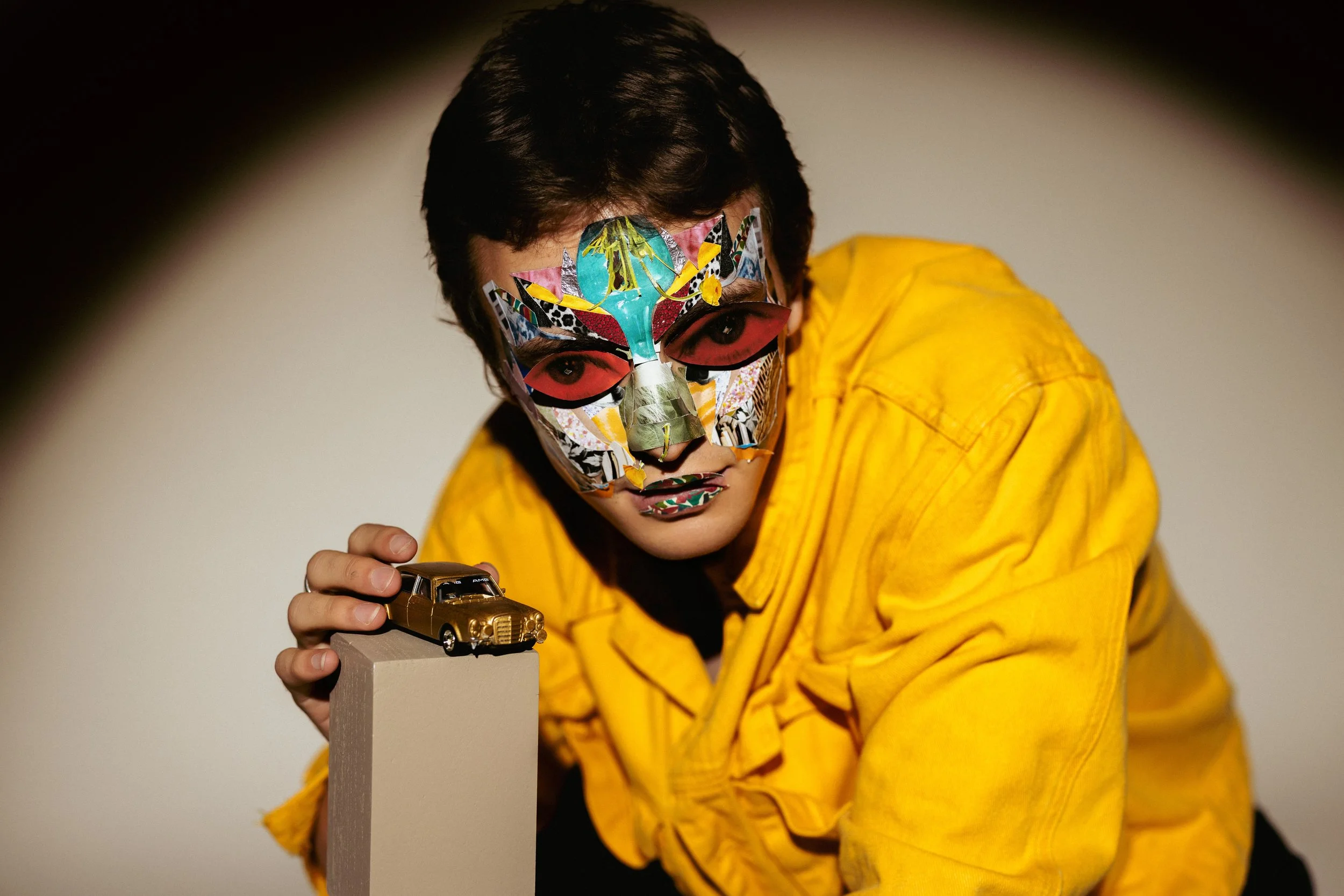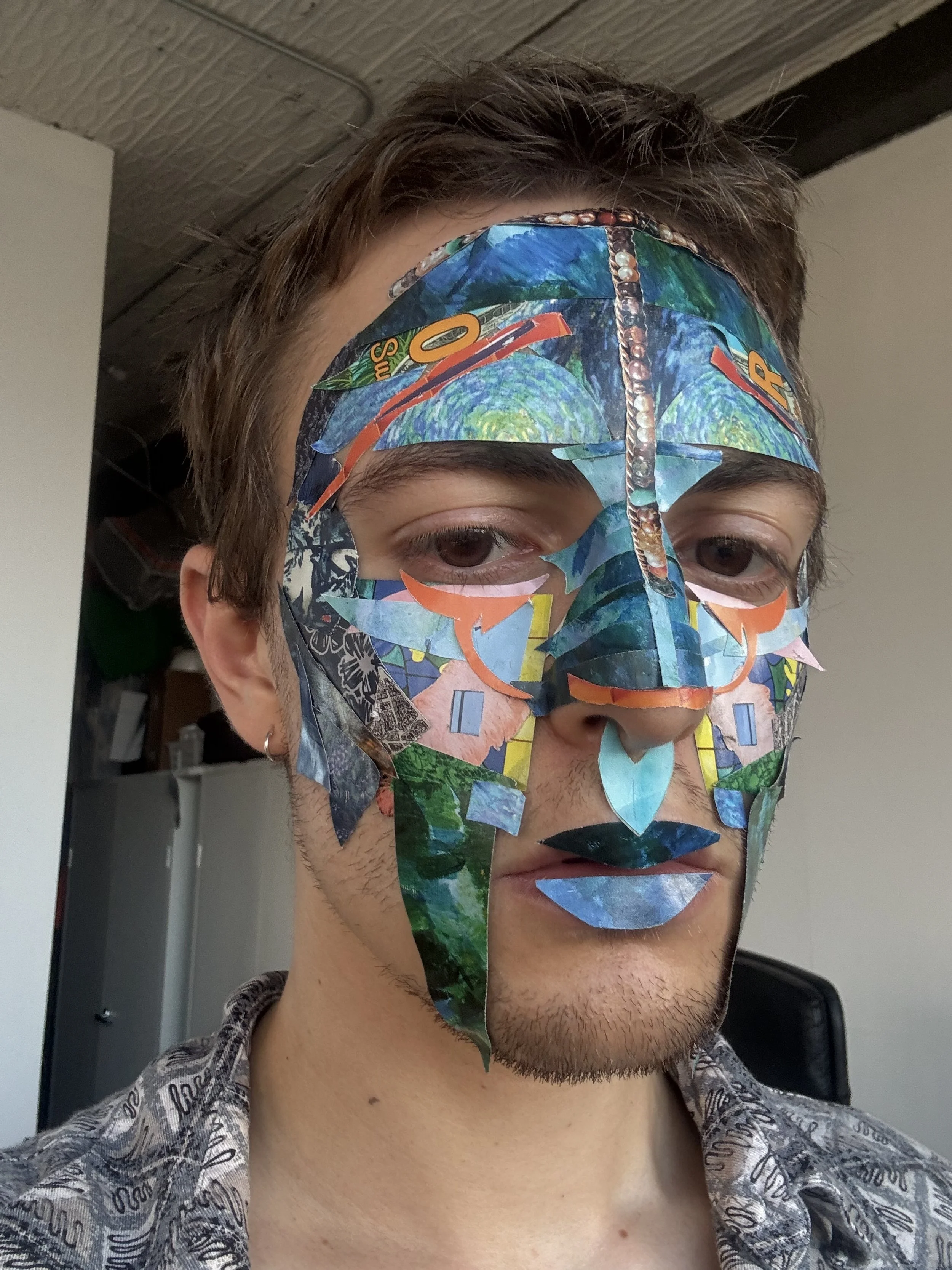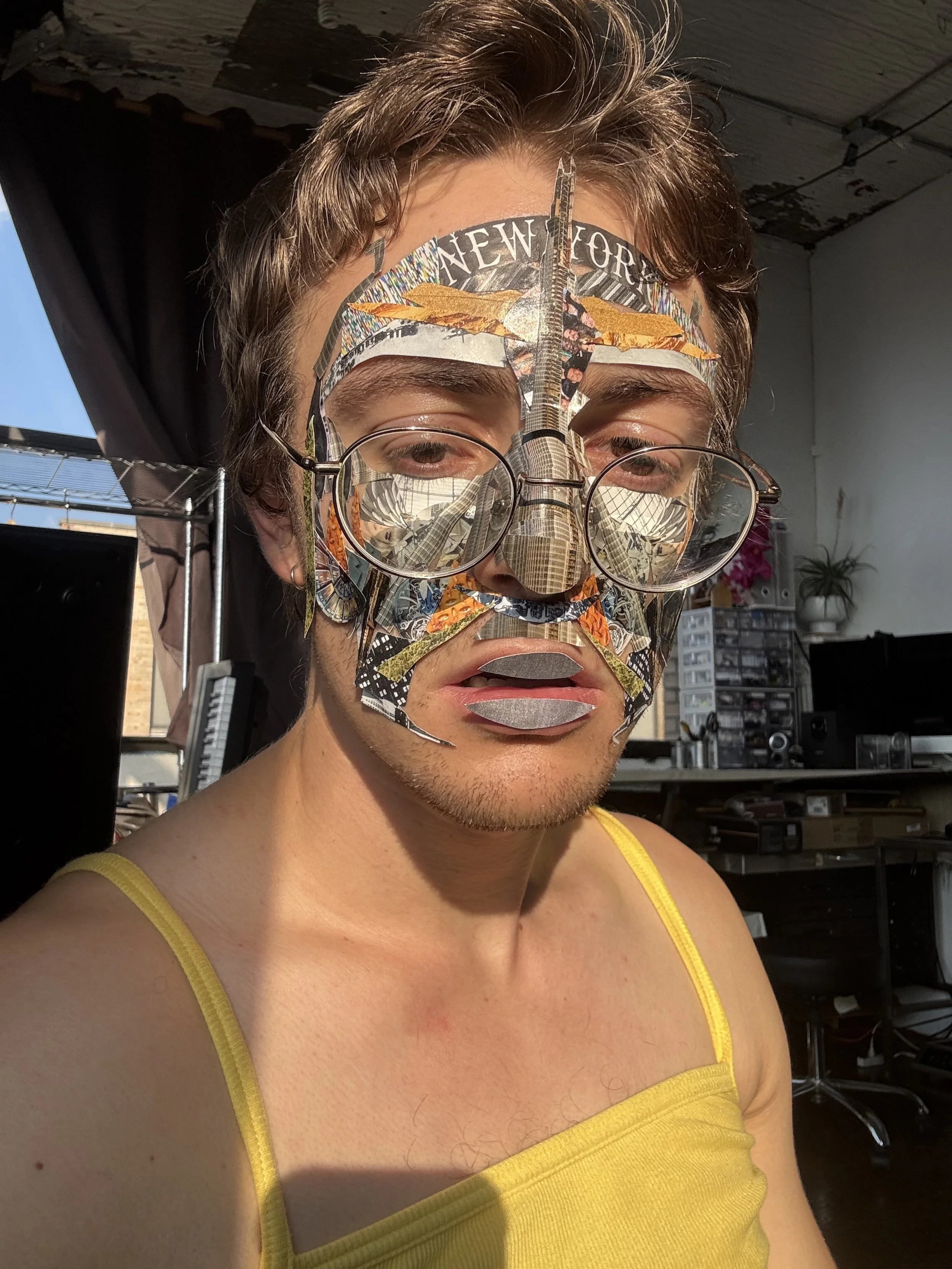 In music, Kite Shepherd seeks to express and embrace the surrealism of everyday life in order to galvanize introspection and change. Edges—political, artistic, personal—are where Kite plays and hides. Kite’s signature mask, the face collage, is their way of performing these edges onstage, encouraging their audience to reflect and embrace feelings of alienation and grief.